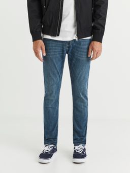 Modré bavlněné džíny s elastanem. Klasické zapínání na zip a knoflík. Standardních 5 kapes. Poutka na pásek. Pohodlný střih.