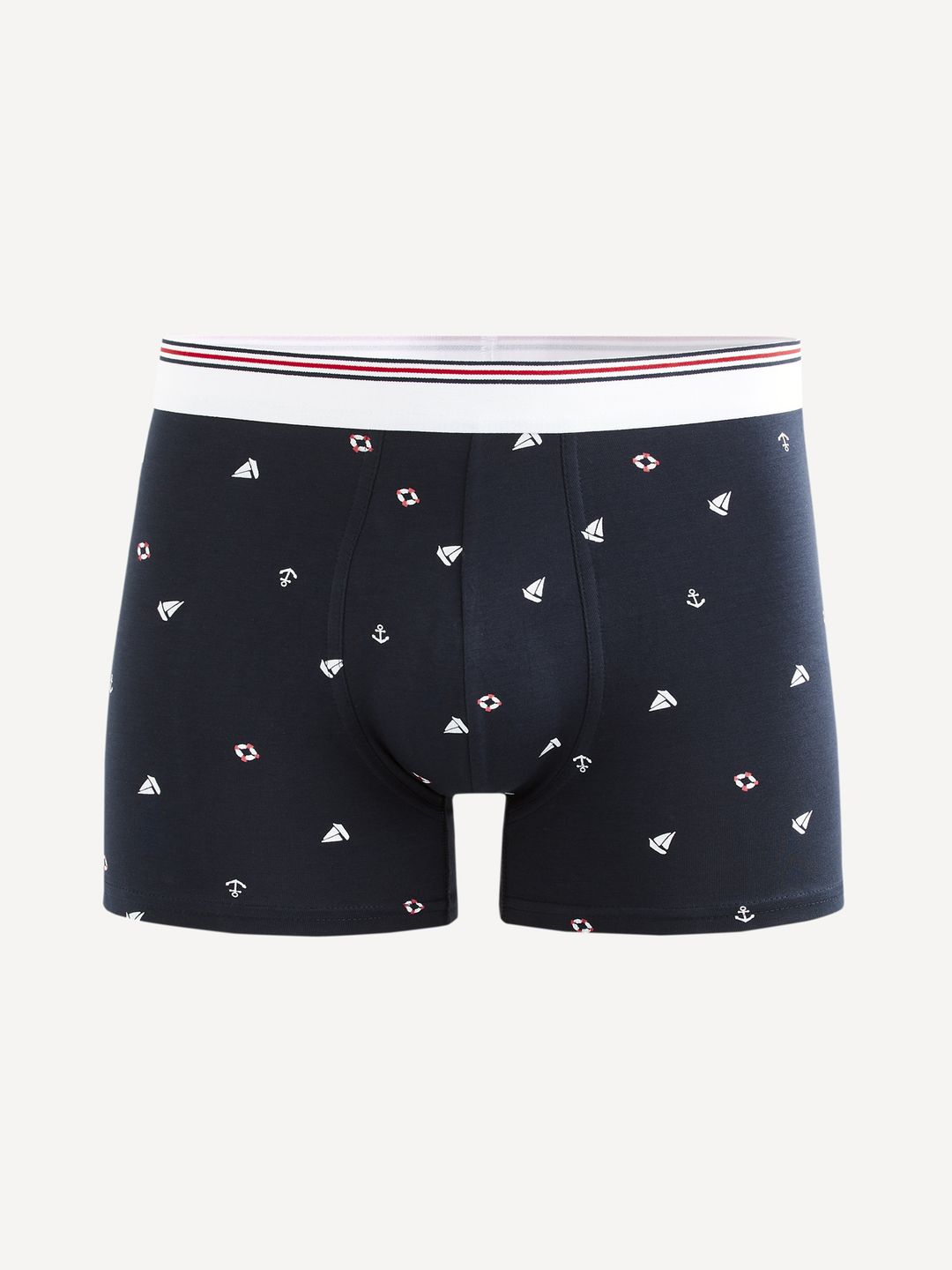 Boxerky s pružným pasem. Plošný drobný vzor. Bavlněné s obsahem elastanu. Kratší střih nohaviček.