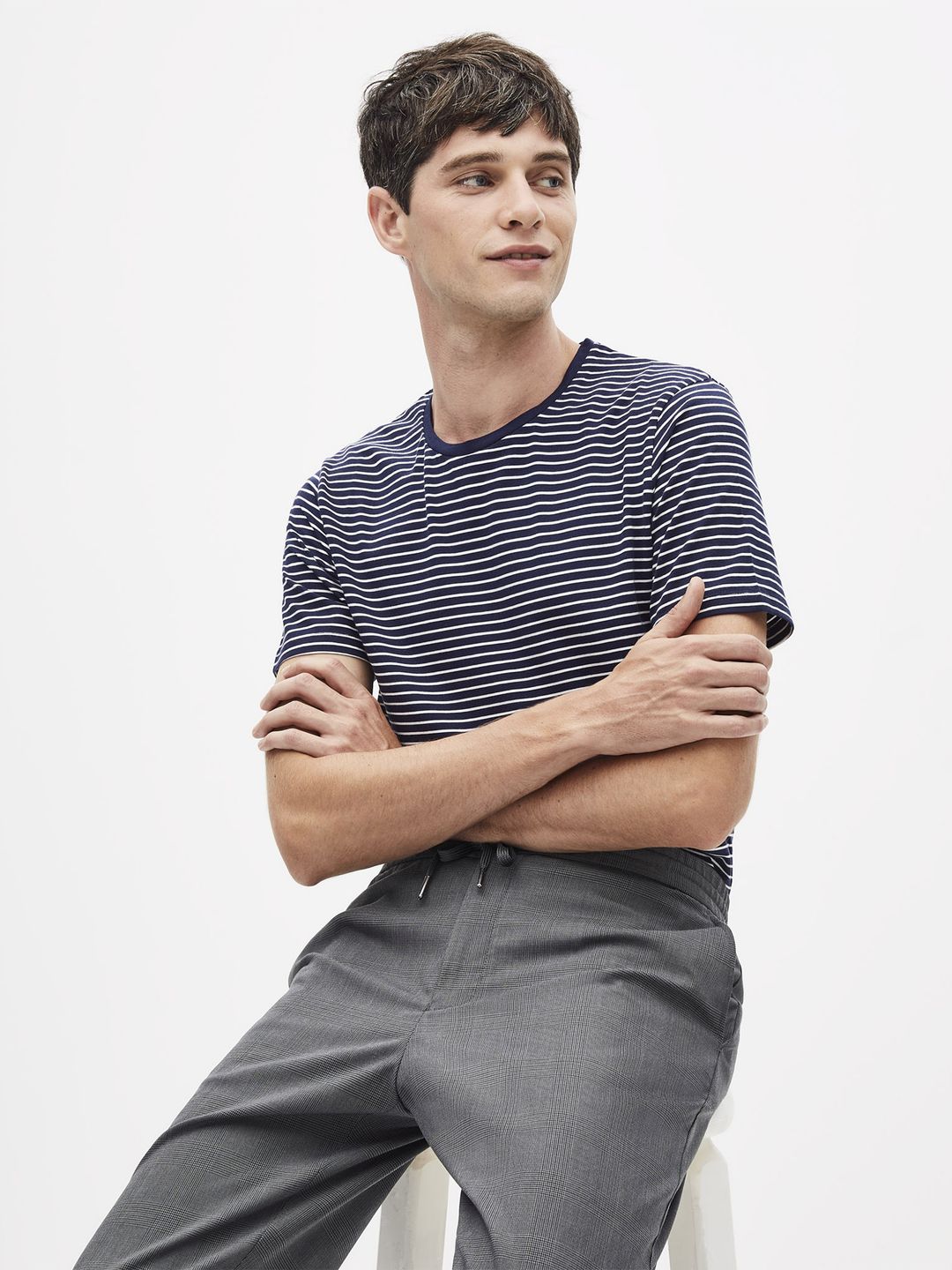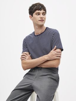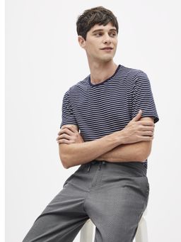 Pruhované tričko s krátkým rukávem. Kulatý vástřih ke krku. Bvalněné s elastanem.