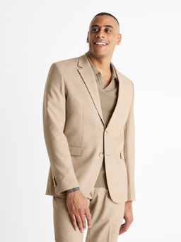 Elegantní béžové sako s podšívkou. Vypasovaný střih pěkně zdůrazní postavu. Klasické zapínání na 2 knoflíky, moderní klopy a kapsy s klopami. Kapsička na kapesníček. Rukávy se zapínáním na 4 knoflíky. Sako lze prát v pračce.