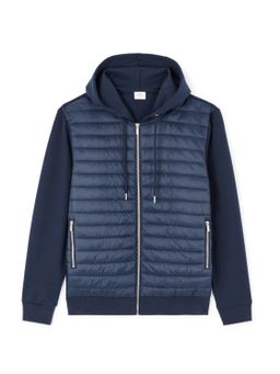 Zateplená prošívaná bunda s rukávy z pružného úpletu. Zapínání na zip. Kapuce se stahovací šňůrkou. Šikmé boční kapsy na zip. Široké a pružné náplety.