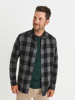 Flanelová kostkovaná košile z bavlny. Dlouhé rukávy s manžetou. Klasický límeček u krku a volnější střih.