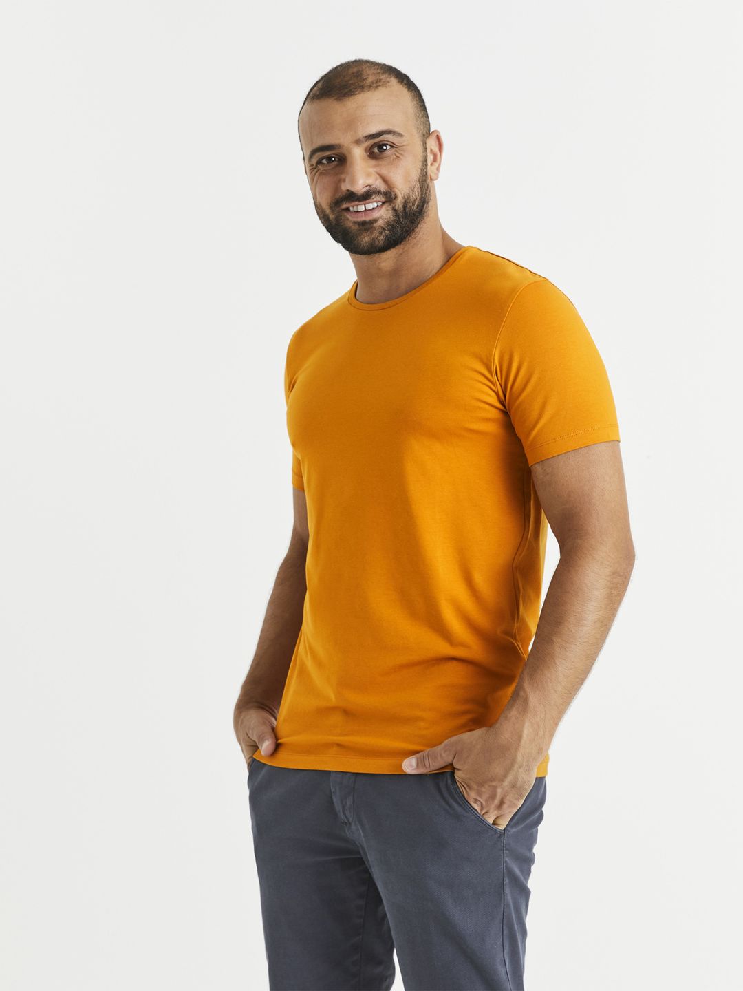 Jednoduché tričko s krátkým rukávem a z prémiové bavlny Supima®. Tričko má kulatý výstřih a rovný střih. Hodí se k džínům, kraťasům nebo chino kalhotám.