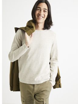 Hladký bavlněný svetr s kulatým výstřihem. Jemný melír. Pružné náplety.