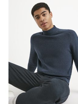 Hladký pletený svetr s vysokým nápletem u krku. Příjemný materiál. Kratší délka.
