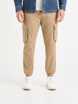 Bavlněné volnočasové kalhoty cargo s elastanem. Pružný pas se stahovací šňůrkou. Velké boční kapsy s klopami. Přední šikmé kapsy. Zadní skryté kapsy. Nohavice zakončené do pružného lemu.