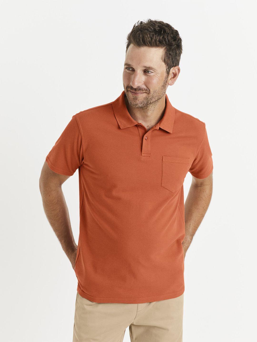 Oranžové polo tričko ze 100% bavlny. Krátké rukávy a rovný střih.