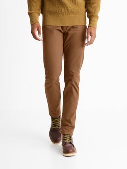 Jednobarevné kalhoty. Úzké chino nohavice z pružné bavlny v keprové vazbě. Kalhoty pro optimální pohodlí ve všech situacích. Pevný pas se zapínáním na zip a knoflík. Poutka na pásek. Přední šikmé kapsy. Zadní kapsy se zapínáním na knoflík. Tyto pánské kalhoty doporučujeme nosit k trendy tričku i košili s potiskem.
