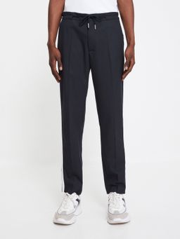 Pánské natahovací kalhoty 24H. Pohodlné s pružným pasem a stahovací šňůrkou. Přední šikmé kapsy. Po straně nohavic bílý pruh. Více volnočasové.