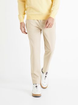 Pohodlné kalhoty mají v pase stahovací šňůrku a skryté zapínání. Mají vysoký pružný pas, praktická poutka na pásek a celkově volný střih nohavic. Přední šikmé kapsy a zadní zapuštěná kapsa. Kalhoty lze nosit s tričkem a bundou.