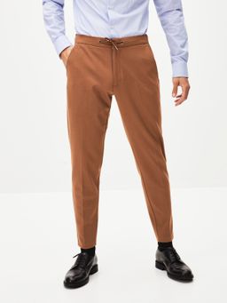 Příjemné pánské kalhoty z měkkého a lehce pružného úpletu. Pružný pas se stahovací šňůrkou. Přední šikmé kapsy a zadní kapsy. Slim střih nohavic. Kalhoty jsou velmi pohodlné a dají se nosit do práce i ve volném čase.