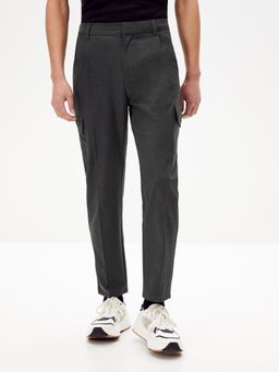 Jednobarevné kalhoty. Pevný pas se zapínáním na zip. Přední šikmé kapsy a zadní skyrté kapsy. Velké kapsy s klopami. Příjemný materiál s elastanem.