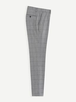 Kalhoty mají pevný pas, skryté zapínání a poutka na pásek. Přední i zadní kapsy. Kostkovaný vzor. Příjemný a pružný materiál.