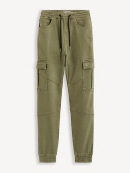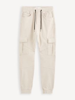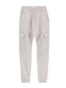 Materiál těchto cargo kalhot ze strečové bavlněné směsi je navržen tak, aby zajistil maximální pohodlí. Kalhoty se hodí k jednoduchému tričku. Mají výrazné kapsy s klopou, elastický pas se stahovací šňůrkou a pružné manžety u nohavic.