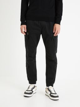 Jednobarevné pohodlné kalhoty s kapsami. Pružný pas se stahovací šňůrkou. Kapsy s klopami. V pase poutka na pásek. Nohavice zakončené pružným lemem. Cargo kalhoty se hodí k tričku, lehké bundě a teniskám.