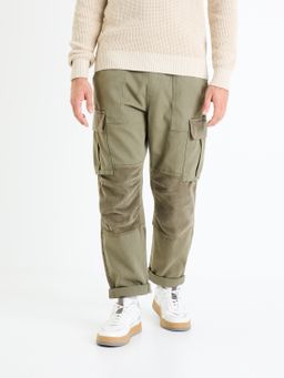 Bavlněné cargo kalhoty s manšestrovými vsadkami. Pružný pas a přední kapsy s prošitím. Velké kapsy s klopou. Falešný poklopec. Kalhoty pro volný čas doplní nejlépe tenisky, tričko a mikina s kapucí.