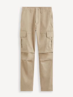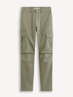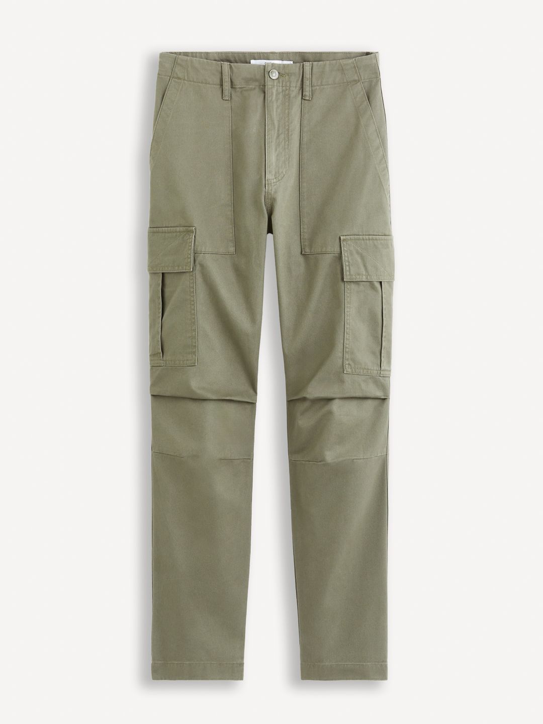 Zajisti si praktický a stylový vzhled s těmito khaki kargo kalhotami od Celio, vyrobenými ze 100% bavlny. Zapínání na knoflík a spousta kapes ti umožní mít všechny důležité věci po ruce. Odolný bavlněný materiál a khaki barva jsou ideální pro každodenní nošení. Užívej si pohodlí a moderní vzhled – s těmito kargo kalhotami.