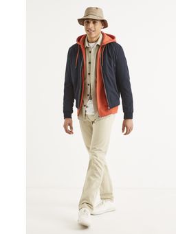 Kalhoty chino ve slim střihu. Bavlněné s elastanem. Pevný pas s poutky na pásek. Šikmé boční kapsy. Zapínání na zip a knoflík. Oblíbené a pohodlné.