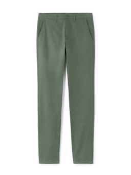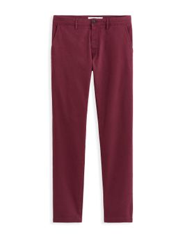 Jednobarevné kalhoty. Úzké chino nohavice z pružné bavlny v keprové vazbě. Kalhoty pro optimální pohodlí ve všech situacích. Pevný pas se zapínáním na zip a knoflík. Poutka na pásek. Přední šikmé kapsy. Zadní kapsy se zapínáním na knoflík. Tyto pánské kalhoty doporučujeme nosit k trendy tričku i košili s potiskem.