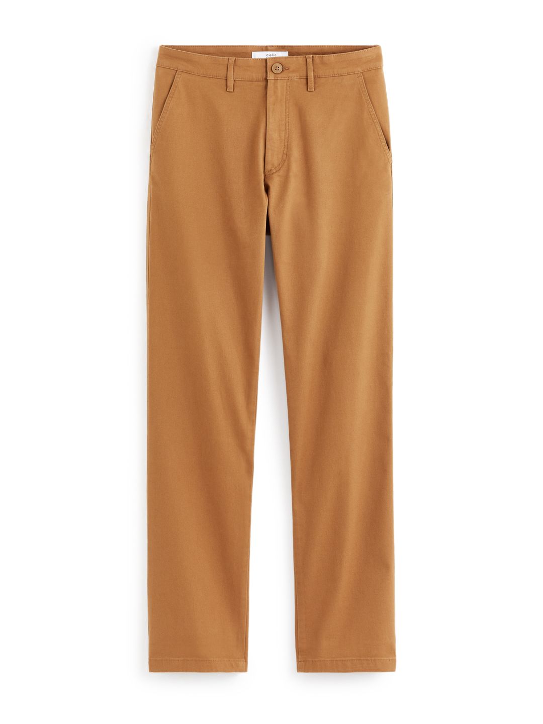 Kvalitní pohodlné kalhoty, které tvoří základ každého šatníku. To jsou chino kalhoty. Mají klasické zapínání na zip a knoflík. Poutka spíše na úzký kožený pásek. Mají přední boční kapsy a zadní kapsy se zapínáním na knoflíky. Hodí se i pro formální příležitosti a do práce. Dobře se kombinují s košilí a svetrem na zapínání.