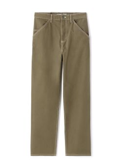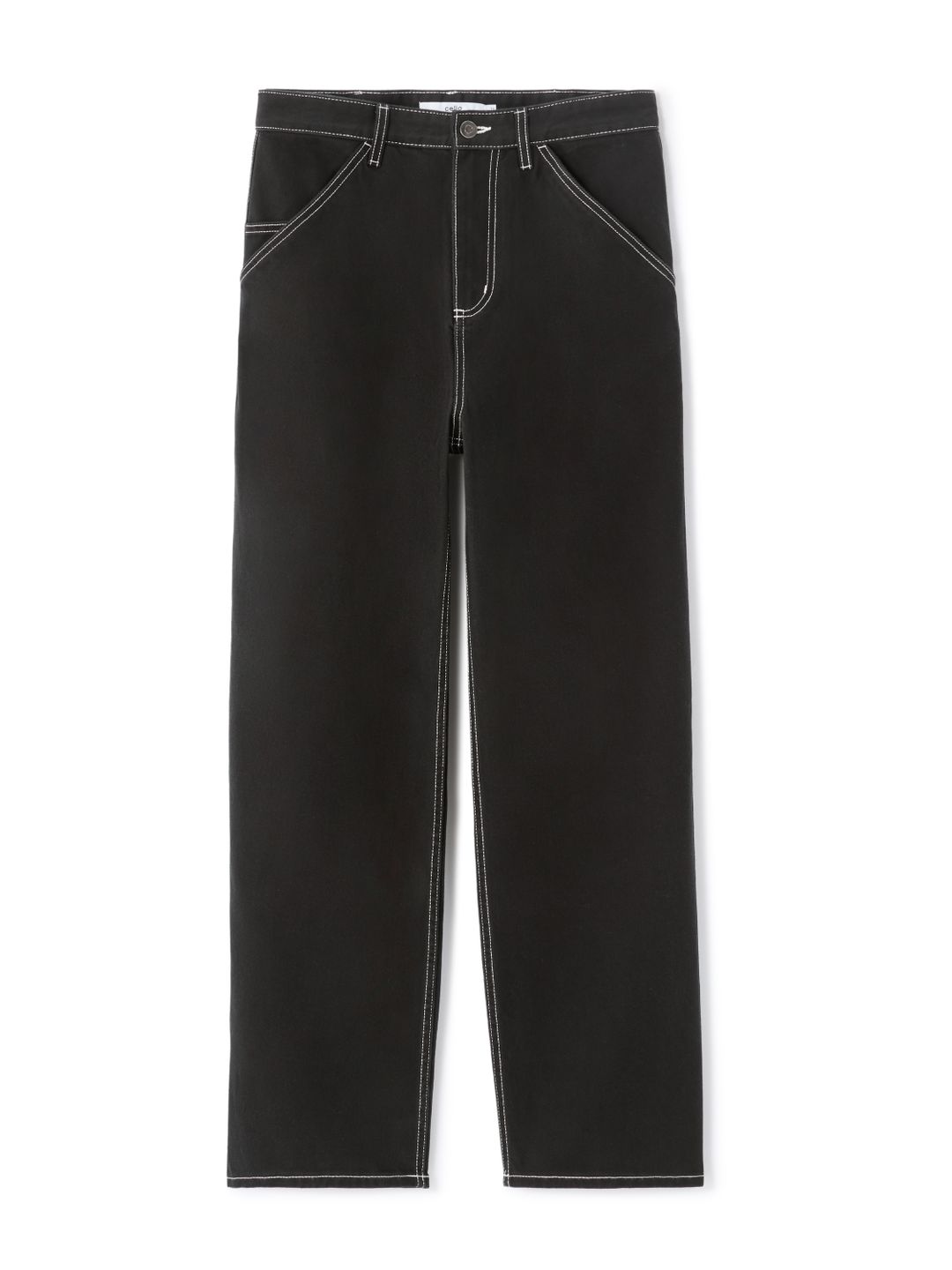 Kalhoty, které zvládnou každý den i každou sezónu. Černé pánské kalhoty v carpenter stylu z 100% bavlny s volným střihem, zapínáním na zip a knoflíky, italskými a nakládanými kapsami a kontrastním prošíváním kombinují praktičnost a styl pro moderního muže, který chce vypadat dobře.