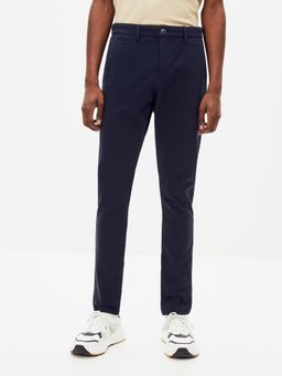 Klasické chino kalhoty z bavlny a elastanu. Zapínání na zip a knoflík. Poutka na pásek. Přední šikmé kapsy. Zadní kapsy se zapínáním na knoflík. Díky elastanu se dobře přizpůsobí postavě.
