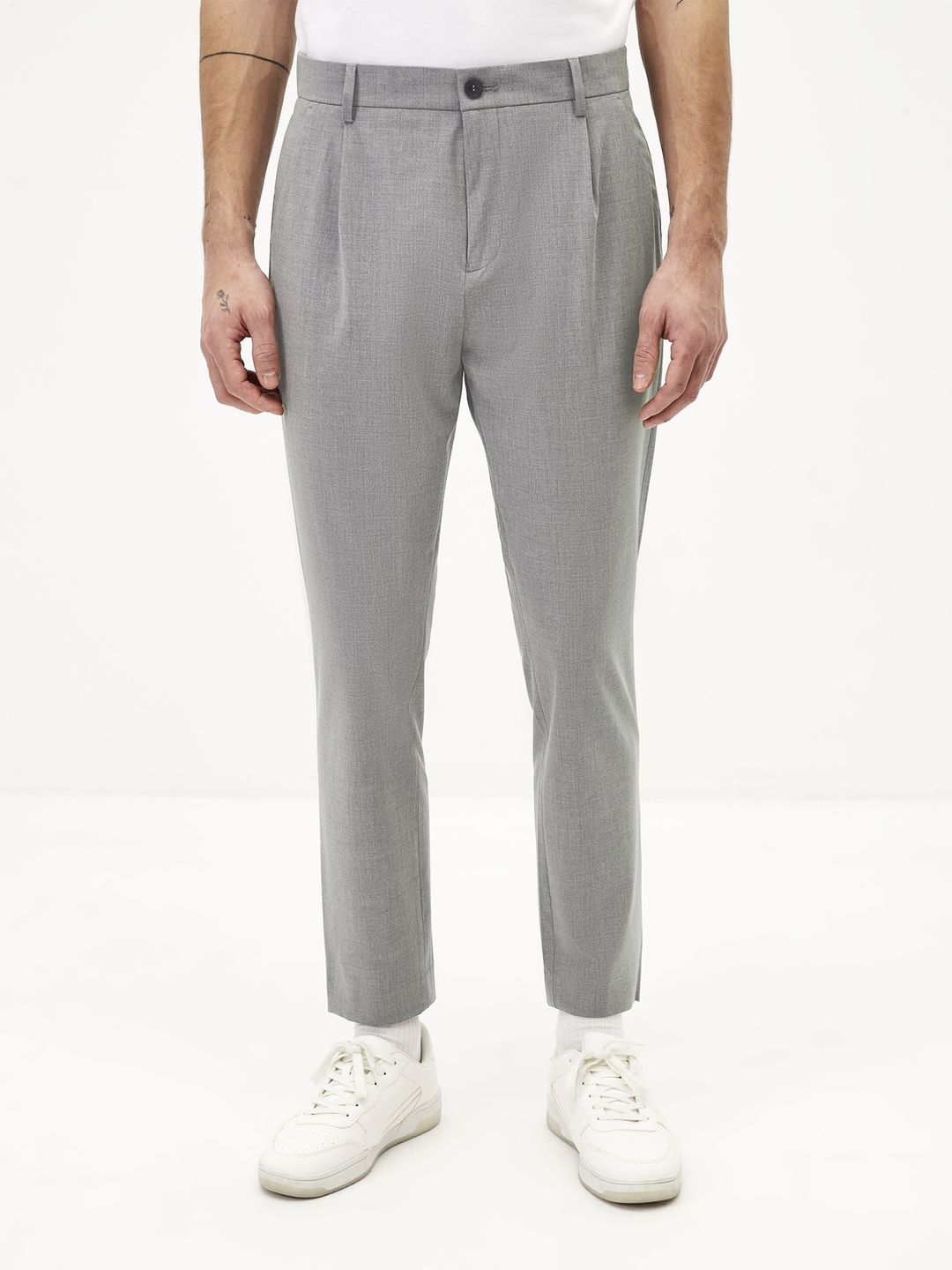 Pohodlné kalhoty s elastanem. Pevný pas s poutky na pásek. Zapínání na zip a knoflík. Šikmé přední kapsy. Více volnočasové.