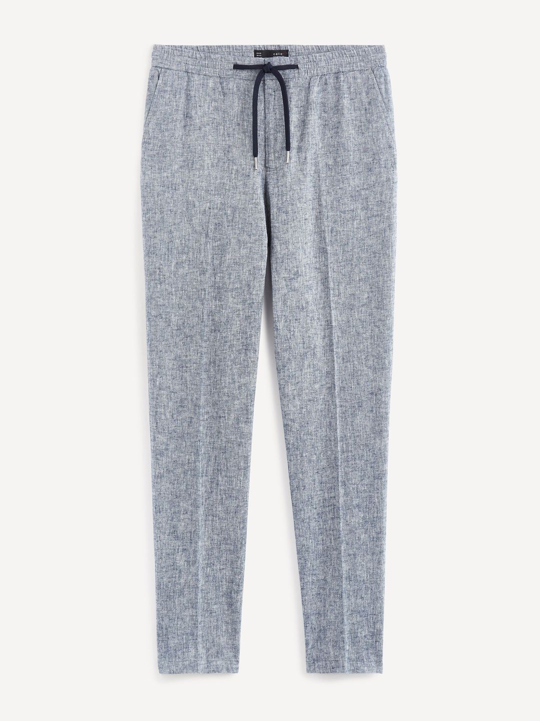 Natahovací kalhoty s pružným pasem. V pase regulační šňůrka. Šikmé boční kapsy. Zadní kapsy. Směs bavlny a lnu.