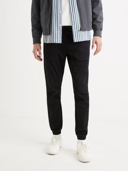 Natahovací kalhoty s pružným pasem a stahovací šňůrkou. Šikmé boční kapsy. Zadní kapsa na zip. Nohavice zakončené do pružného lemu. Bavlněné s elastanem.