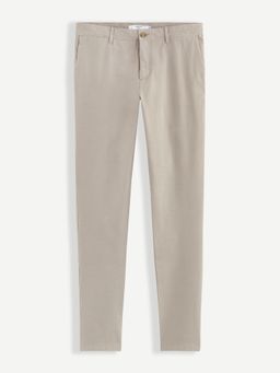 Jednobarevné kalhoty. Úzké chino nohavice z pružné bavlny. Pevný pas se zapínáním na zip a knoflík. Poutka na pásek. Přední šikmé kapsy. Zadní kapsy se zapínáním na knoflík. Tyto pánské kalhoty doporučujeme nosit k trendy tričku a doplnit svrchní košilí.