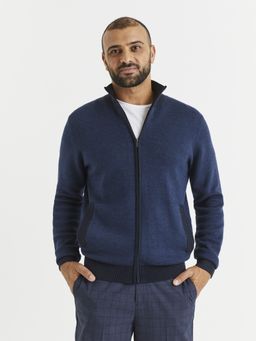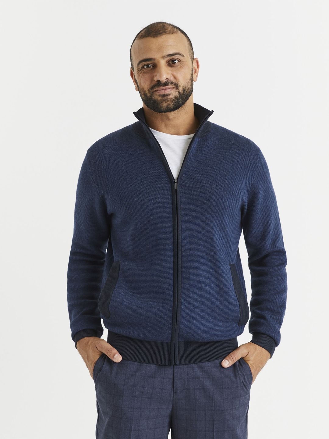 Pletený kardigan se zapínáním na zip. U krku vysoký límec. Široké a pružné náplety. Příjemný a hřejivý materiál.