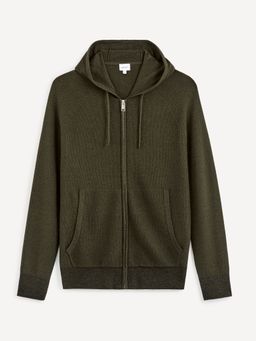 Bavlněný kardigan se zapínáním na zip. Svetr je hladce pletený a má kapuci se stahovací šňůrkou. Nechybí dělená kloklaní kapsa. Rozepnutý skvěle vynikne na bílém tričku. Kardigan se hodí k džínům v šedé barvě a bílým teniskám.