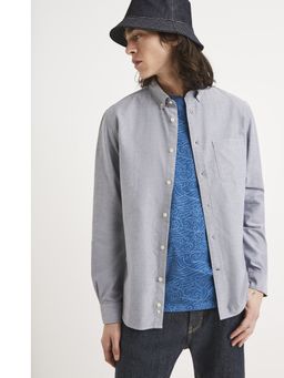 Klasická bavlněná košile v šedé barvě. Rovný střih se zapínáním na knoflíčky. Moderní límeček. Dlouhé rukávy s manžetami. Malá kapsička na hrudi.