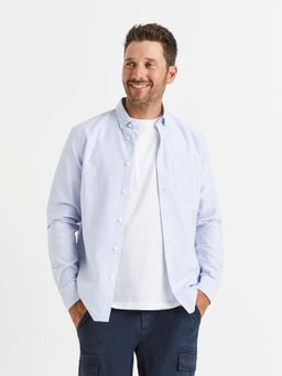 Bavlněná košile oxford s proužkem. Moderní kratší límeček. Dlouhé rukávy s manžetou. Rovný střih.