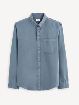 Bavlněná košile s dlouhým rukávem. Rovný střih regular. Krátký límeček se zapínáním na knoflíčky. Na hrudi našitá kapsa. Dlouhé rukávy s manžetou. Zaoblený spodní lem.