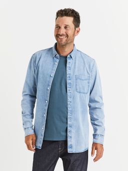 Bavlněná košile s dlouhým rukávem. Krátký límeček se zapínáním na knoflíčky. Na hrudi malá kapsička.