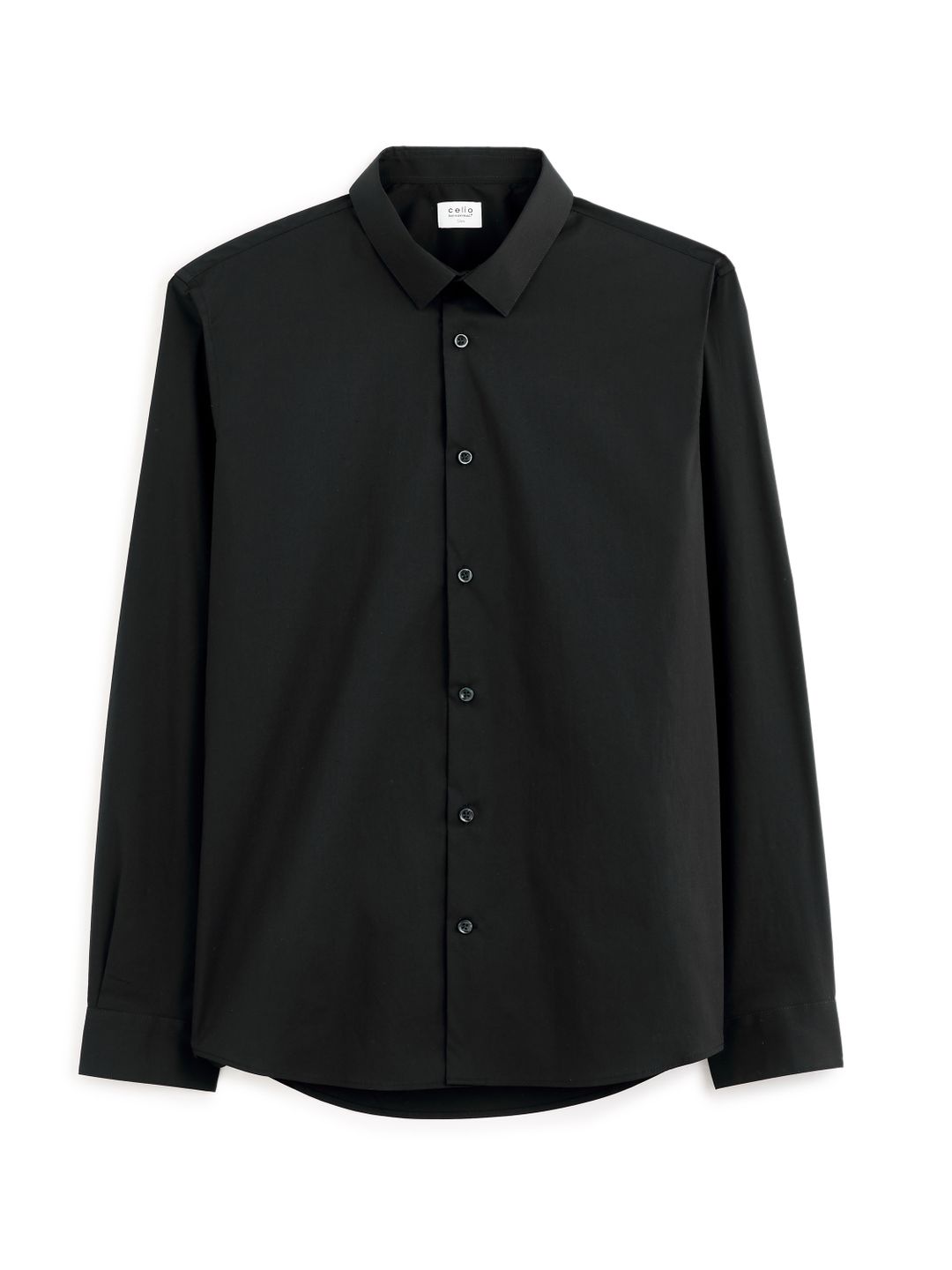 Vypasovaná košile ve slim střihu. Díky elastanu perfektně padne. Zapínání na drobné knoflíčky. U krku kratší límeček. Dlouhé rukávy zakončeny manžetou.