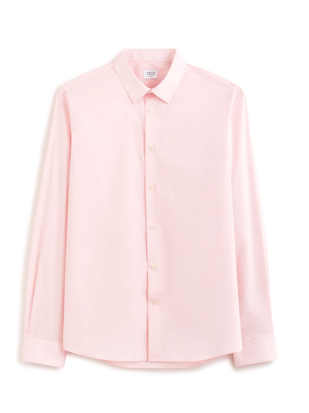 Vypasovaná košile ve slim střihu. Díky elastanu perfektně padne. Zapínání na drobné knoflíčky. U krku kratší límeček. Dlouhé rukávy zakončeny manžetou.