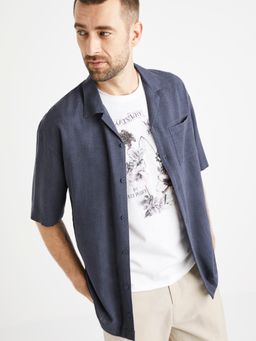 Košile s krátkým rukávem. U krku rozhalenka a zapínání na knoflíky. Malá kapsička. Příjemný materiál s obsahem lnu.