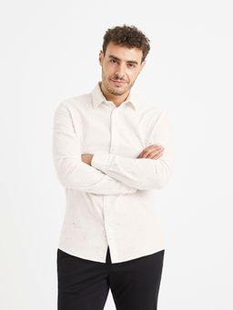 Košile v bílé barvě s jemným vzorem. Zapínání na knoflíčky. Klasický límeček. Bavlna s polyesterem.