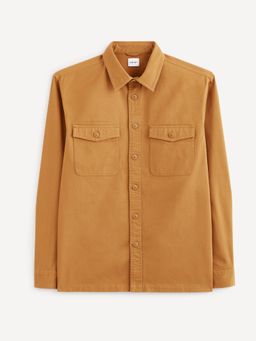 Svrchní bavlněná košile worker s dlouhým rukávem. Výrazné kapsy s klopou. Moderní krátký límeček. Zapínání na knoflíčky.