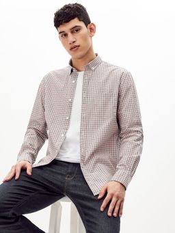 Kostkovaná košile v regular střihu. Košile má kratší límeček se zapínáním na 2 knoflíčky, knoflíkovou légu a na hrudi našitou malou kapsičku. Dlouhé rukávy jsou zakončeny klasickou manžetou se zapínáním na 1 knoflíček. Bavlněná košile se nosí k džínům a teniskám. Dobře vypadá i rozepnutá a oblečená přes bílé tričko.