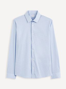 Košile s drobným kostkovaným vzorem. Ve slim střihu a s elastanem. Díky elastanu perfektně padne. Zapínání na drobné knoflíčky. U krku kratší límeček. Dlouhé rukávy zakončeny manžetou. Zaoblený spodní lem.