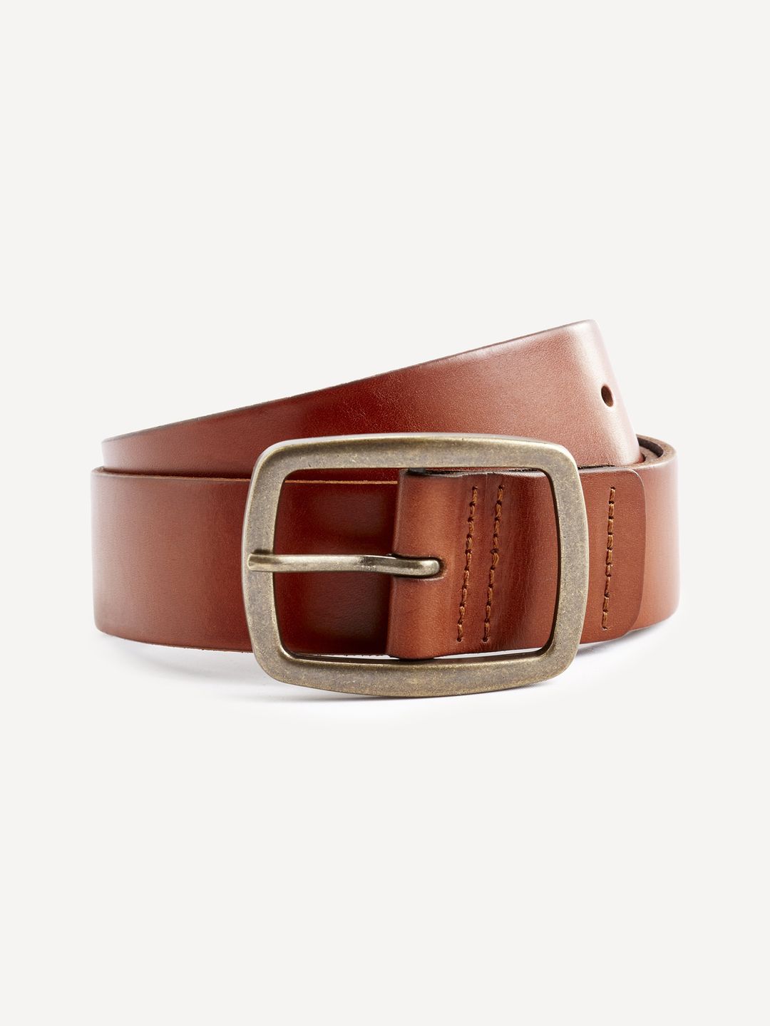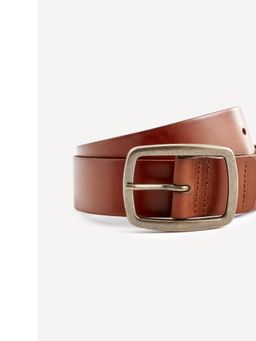 Kožený pásek s přezkou s jedním trnem. Přezka širší kovová lesklá. Kvalitní odolná kůže. Precizní zpracování.