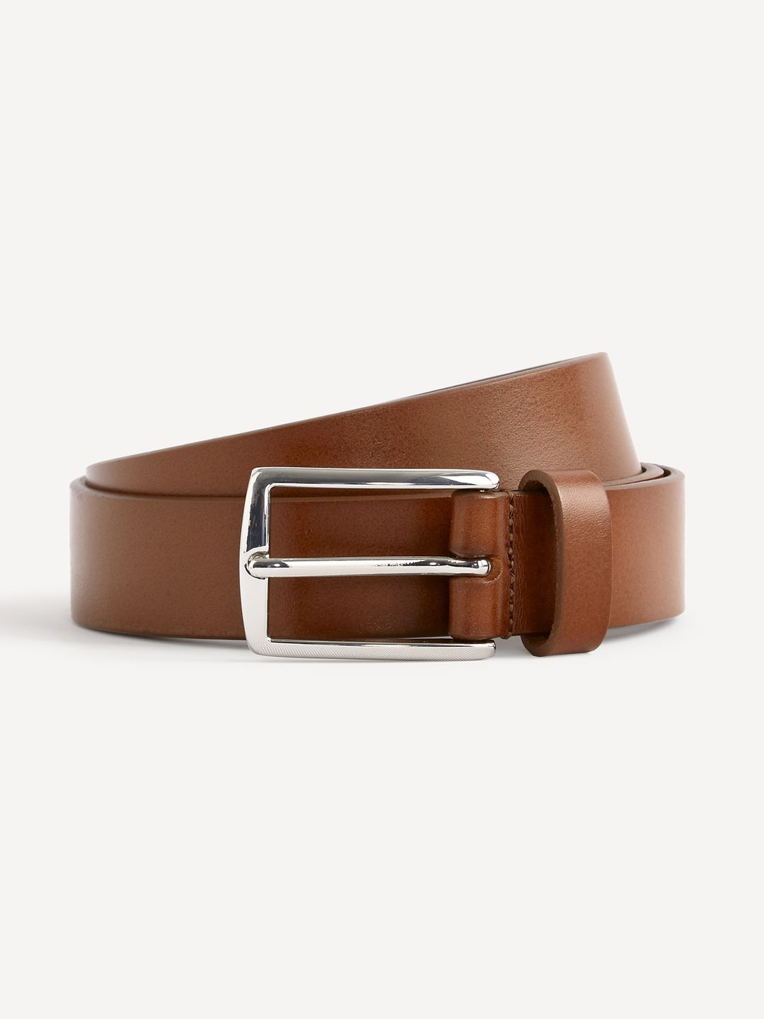 Kožený pásek s přezkou s jedním trnem. Kovová přezka v lesklém provedení. Pěkné kvalitní zpracování.