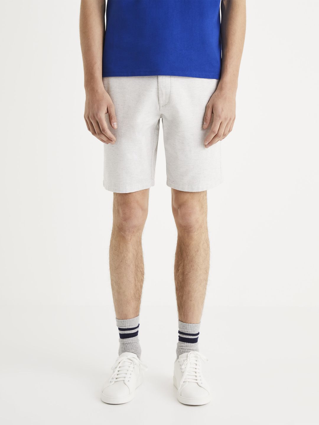 Kraťasy chino se směsi bavlny a lnu s elastanem. Pas se stahovací šňůrkou. Šikmé boční kapsy a kratší délka.