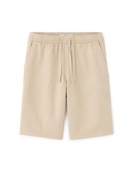Ležérní styl a elegance v jednom – tyto béžové pánské bermudy z efektní látky jsou ideální volbou pro moderní vzhled s pohodlným nošením. Texturovaný obrněný efekt dodává na originalitě, zatímco rovný střih a délka ke kolenům zajišťují nadčasovou siluetu. Praktický nastavitelný pas se stahovací šňůrkou a dvě boční kapsy podtrhují funkčnost.