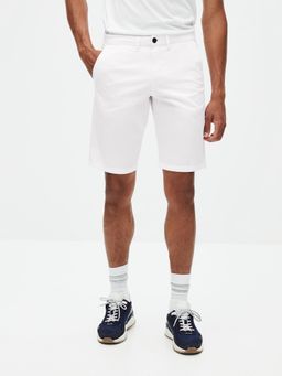 Jednobarevné kraťasy se zapínáním na zip a knoflík. Poutka na pásek. Šikmé boční kapsy. Bavlněné s elastanem.
