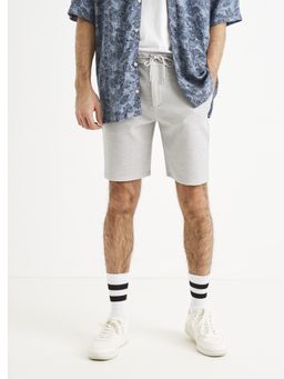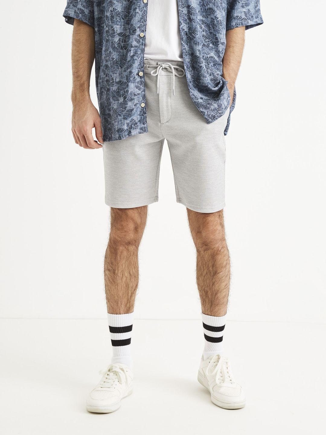 Jednobarevné úpletové kraťasy. Pevný pas s poutky na pásek. Šikmé boční kapsy. V pase stahovací šňůrka. Příjemný materiál s elastanem. Sirší nohavice v délce nad kolena.