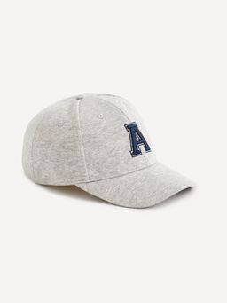 Čepice ze 100% bavlněného fleecového žerzeje s písmenem na přední straně.